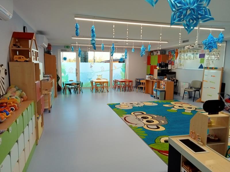 - 4 nowocześnie wyposażone sale dydaktyczne, gabinet specjalistyczny, przestronne patio z przeszklonym dachem,